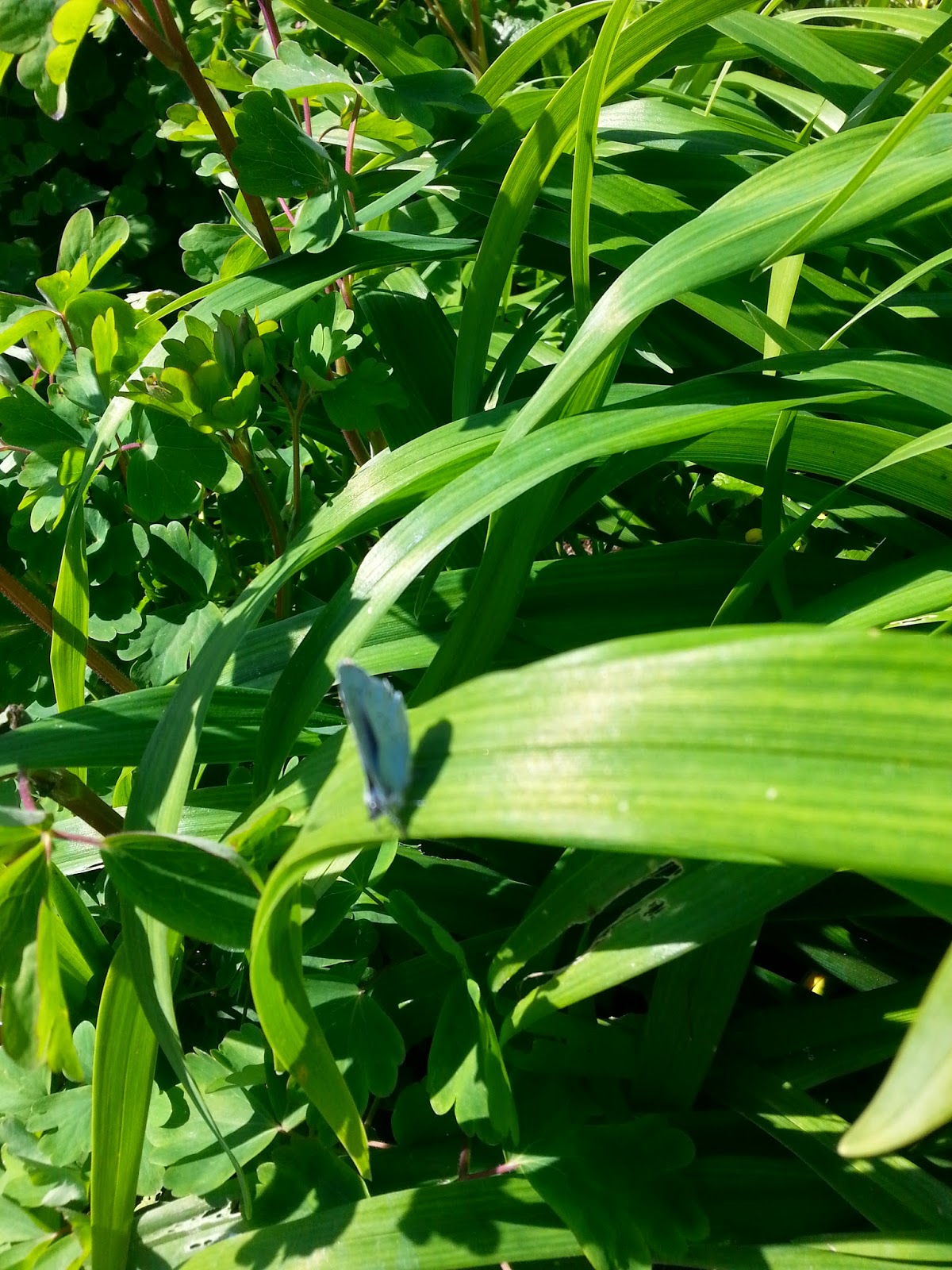 A visitor enjoying the sunshine. Come back little blue butterfly and bring your friends you are very welcome.