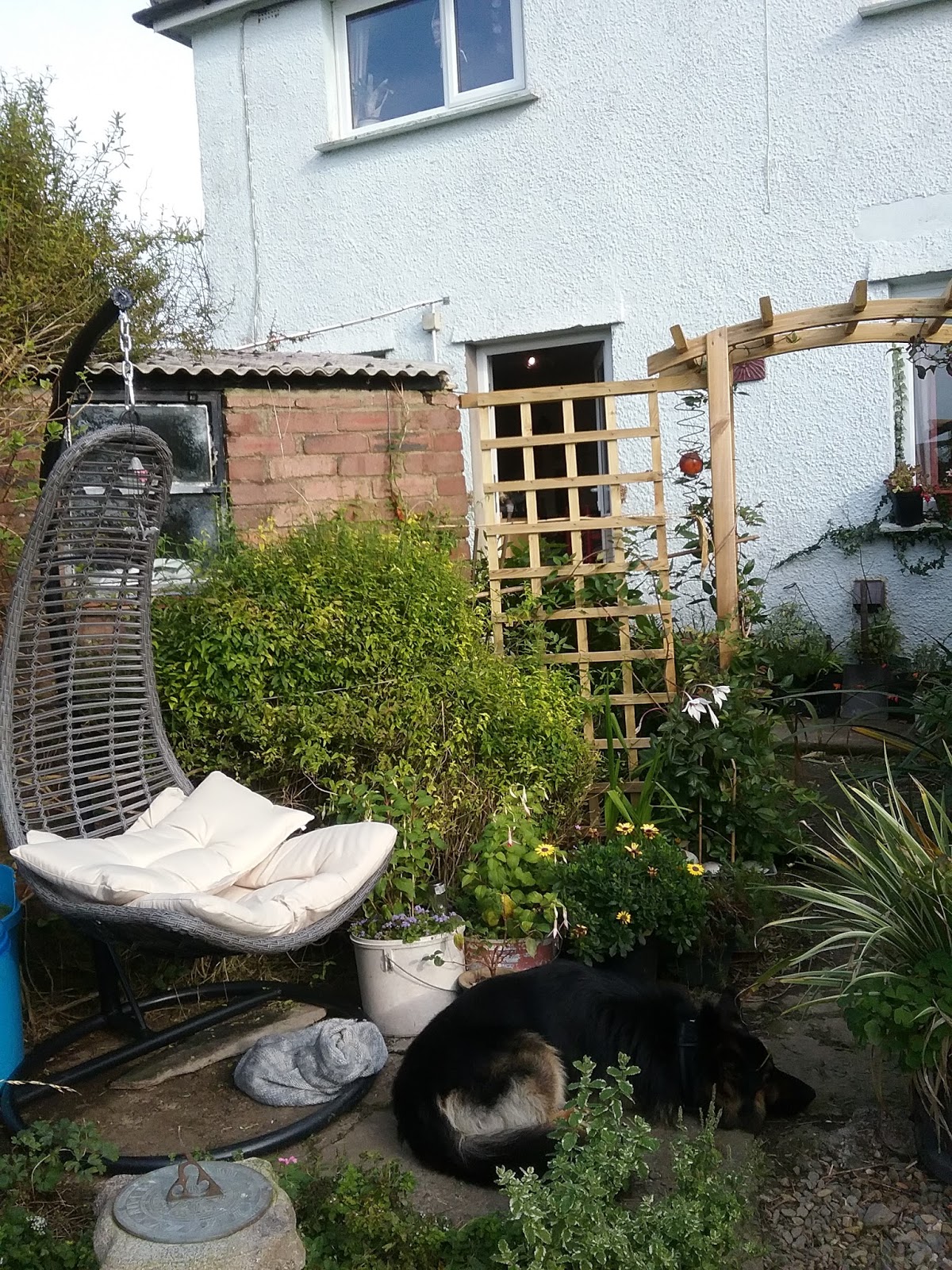 It's been a while since I posted here, this doesn't mean my garden has been neglected. Far from it. The clematis outside my back door was drastically pruned back after she finished flowering and the old archway which collapses every year was replaced with a brand new and I'm ashamed to say, shop bought one which I hope will prove to be a bit more robust than my attempts at woodwork.